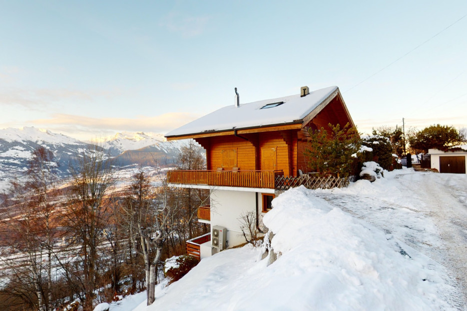 L'appartement est au rez-de-chaussée d'un chalet et offre une magnifique vue sur la plaine du Rhône.
