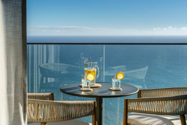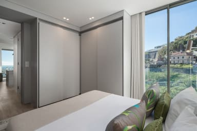 La chambre principale comprend un lit double, une salle de bains attenante avec douche et un accès au balcon, offrant ainsi intimité et confort. Le balcon avec vue sur la mer est parfait pour profiter de moments de détente et de contemplation.
