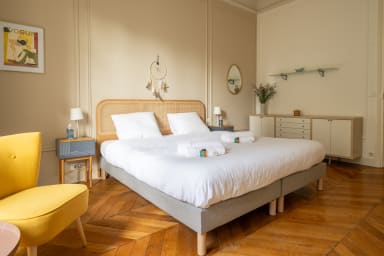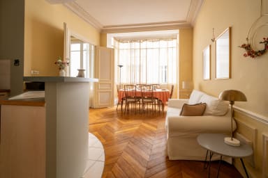 Profitez de cet élégant appartement de 135 m², situé au troisième étage avec ascenseur, pouvant accueillir jusqu’à 6 personnes. Spacieux, lumineux et raffiné, il offre un cadre de vie calme et privilégié au sein d’un quartier emblématique de la capitale.
