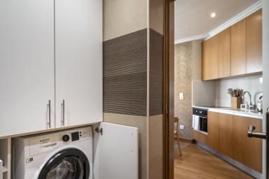 L'appartement comprend une chambre double, un salon avec climatisation et une kitchenette entièrement équipée, créant ainsi un environnement fonctionnel et accueillant pour la vie de tous les jours. Il dispose également d'une salle de bains avec douche et d'un lave-linge, ce qui vous assure une plus grande commodité pendant votre séjour. Le balcon privé offre un espace agréable, idéal pour se détendre à la fin de la journée.